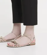Sandalia Plana Metalizada con Tiras Nudo y Lazo