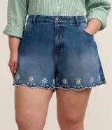 Short Mom Jeans con Bordado Richelieu