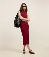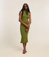 Vestido Midi Canelado con Cuello Alto