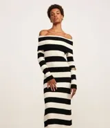 Vestido Midi Rayado con Escote Bardot
