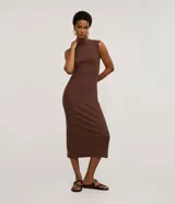 Vestido Midi en Rib con Escote Canoa en Renner | Trendo