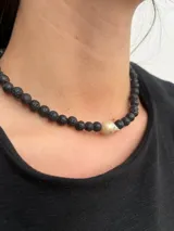 Collar de Piedra Volcánica y Perla de Río