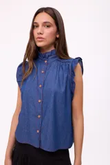 Blusa Cereza Denim en Savia | Trendo