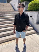 Camisa de lino negra cuello mao en Soho 889 | Trendo