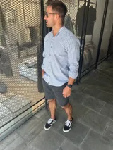 Camisa rayada cuello mao en Soho 889 | Trendo