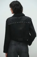 Campera de jean crop con tachas