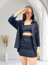 Pollera Corta Lino Rayón en STONES | Trendo