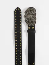 Cinturón con Hebilla de Corazón y Tachas