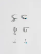 Set de Aros Dorados con Detalles Celestes en Symphorine | Trendo