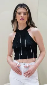 Top tejido con perlas en TITS | Trendo