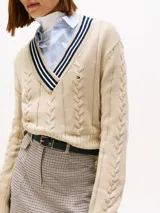 Sweater de cuello V con tejido cableado en Tommy Hilfiger | Trendo