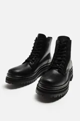 Bota con Cordones de Cuero en Zara | Trendo