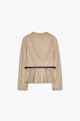 Chaqueta Peplum Efecto Ante con Cinturón en Zara | Trendo