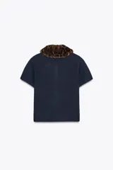 Chaqueta de punto con cuello animal print en Zara | Trendo