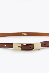 Cinturón Fino Piel Hebilla Rectangular en Zara | Trendo