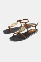 Sandalia Plana con Adorno Metálico en Zara | Trendo