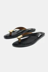 Sandalia Plana con Adorno Metálico en Zara | Trendo