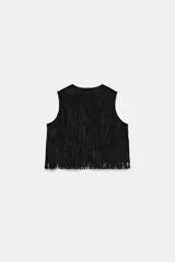 Top Crop Efecto Ante con Flecos y Tachas en Zara | Trendo