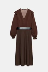 Vestido midi combinado con cinturón en Zara | Trendo