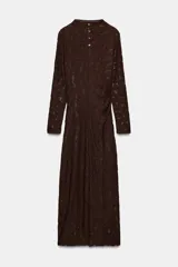Vestido Midi Drapeado Pointelle en Zara | Trendo