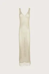 Vestido largo tejido con flecos