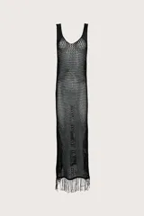 Vestido Largo de Red con Flecos